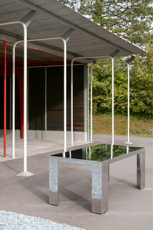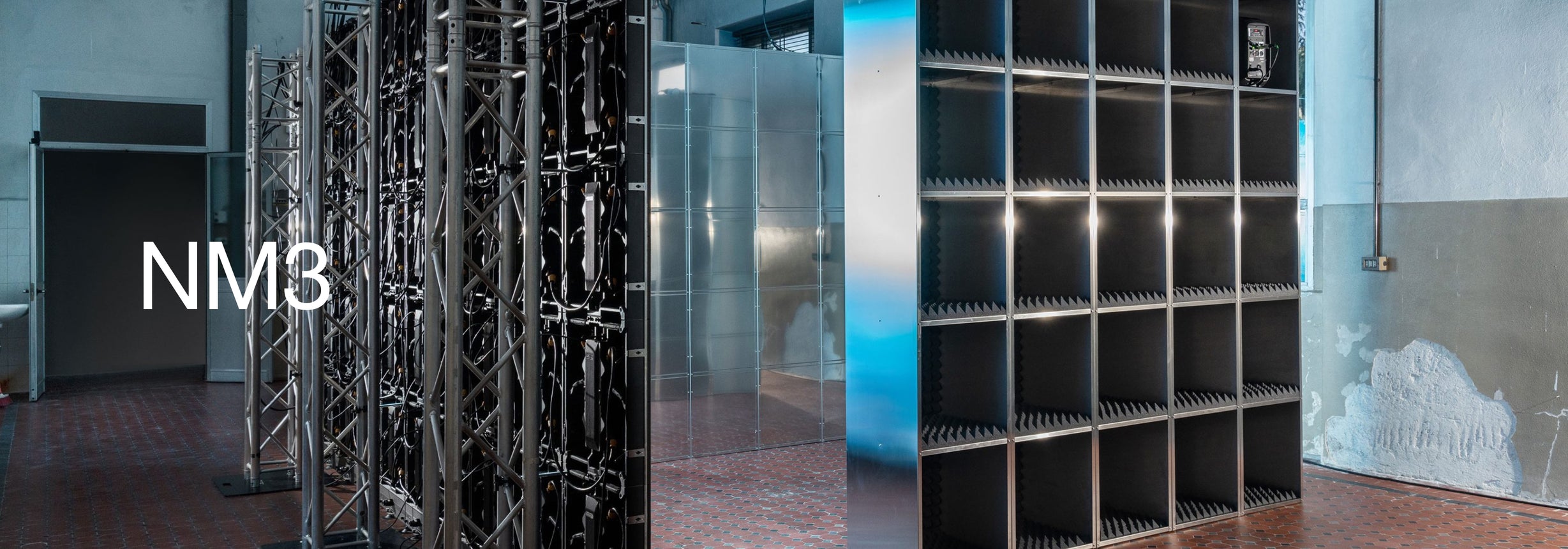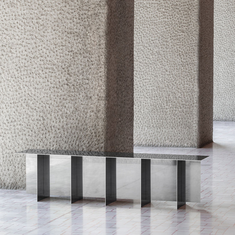 Nicolo Ornaghi, Francesco Zorzi, and Delfino Sisto Legnaniare the creative minds behind NM3 — a Milan-based design brand and consultancy agency which does architecture, interior, product, and custom furniture design. The trio met during their architecture studies at Politecnico Milan, where they found mutual ground in their love of industrial systems and simplicity. Since 2020, they’ve rapidly made a name for themselves with sleek steel pieces in their own production, as well as in collaborations with fashion brands like Givenchy, Off-White, All Blues, Chimi and Our Legacy.